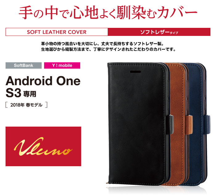 細かなディティールにもこだわりぬいた革小物のような風合いを楽しめるAndroid One S3用ソフトレザーカバー(手帳型)です。