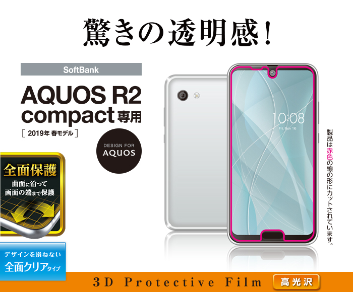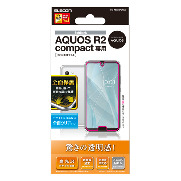 液晶画面を隅から隅まで保護できます。専用ヘラ付きで貼りつけやすく、液晶画面をしっかり守る高光沢タイプのAQUOS R2 compact用液晶保護フィルムです。