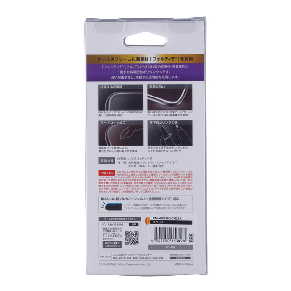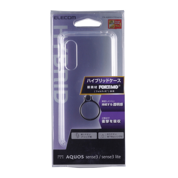 ポリカーボネートと高弾性・無黄変性に優れた三井化学(株)製「フォルティモ(R)/TPU(熱可塑性ポリウレタン)」、2つの素材を使用したAQUOS sense3、AQUOS sense3 lite、AQUOS sense3 basic、Android One S7用リング付耐衝撃ハイブリッドケースです。