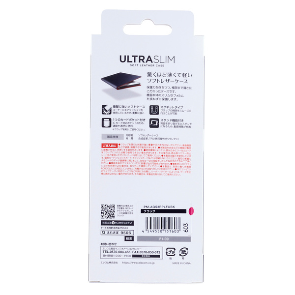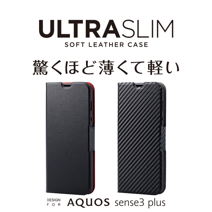 本体の薄さ、軽さを損ねない薄型・超軽量なウルトラスリムタイプのAQUOS sense3 plus用ソフトレザーケース(手帳型)です。
