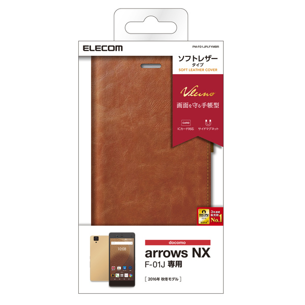 細かなディティールにもこだわりぬいた革小物のような風合いを楽しめるdocomo arrows NX(F-01J)用ソフトレザーカバー(手帳型)です。