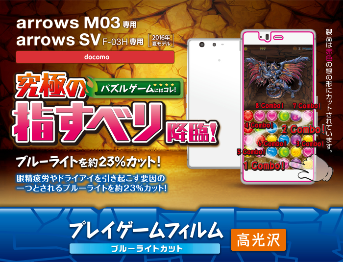 - docomo arrows SV(F-03H) / arrows M03の液晶画面をキズや汚れから守る、スーパースムースタイプの液晶保護フィルムです。