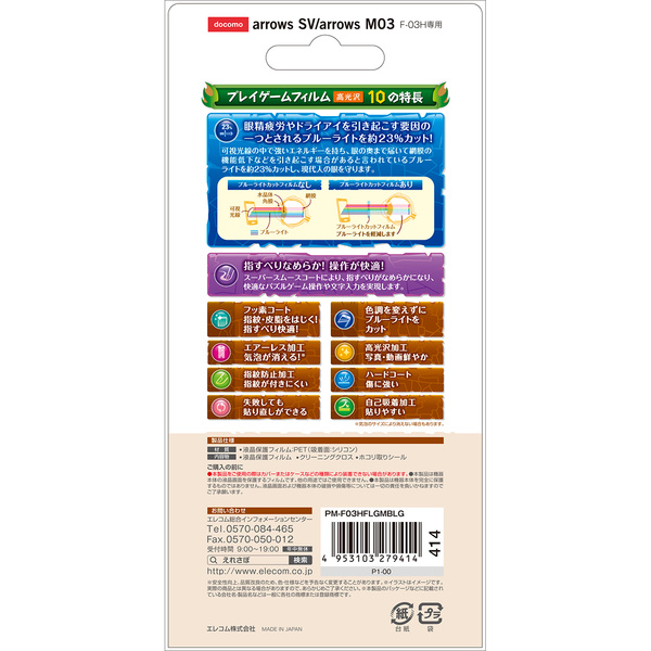 - docomo arrows SV(F-03H) / arrows M03の形状に合わせたサイズにカット済みなので、パッケージから取り出してすぐに使用可能です。