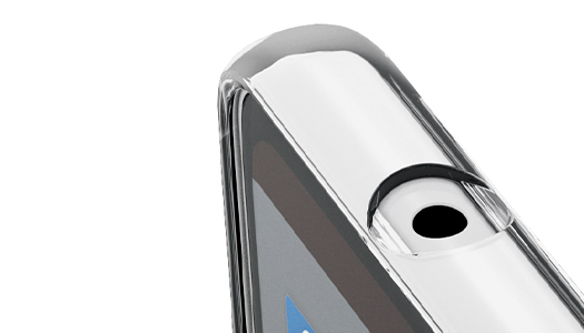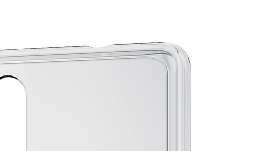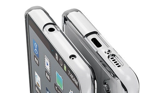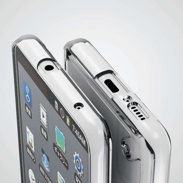 カバー背面と前面にそれぞれ凸型リブ設計を施し、背面カメラや背面、液晶画面のキズ付きを防ぎます。