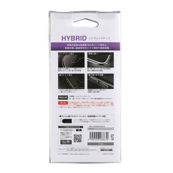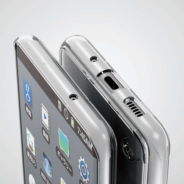 カバー背面と前面にそれぞれ凸型リブ設計を施し、背面カメラや背面、液晶画面のキズ付きを防ぎます。