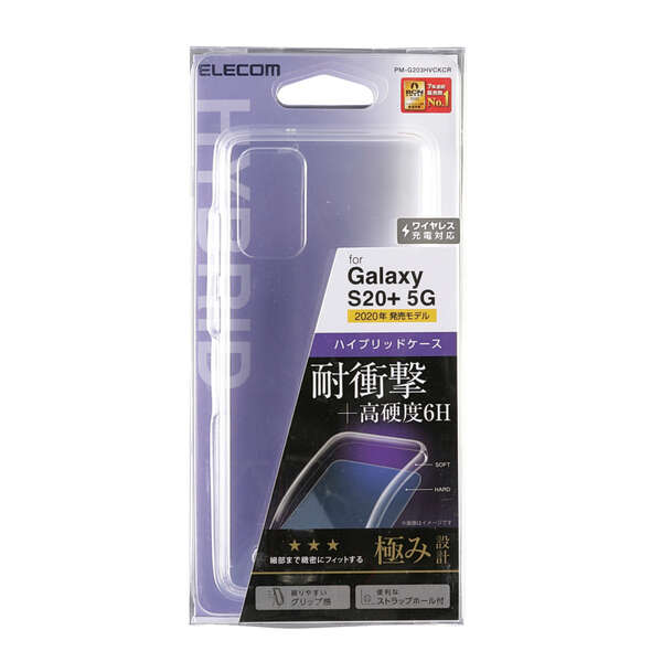 側面に弾力性のあるTPU素材を、背面に強じんで透明度の高いポリカーボネート素材を使用した、スリムなスタイルのGalaxy S20+ 5G用ハイブリッドケースです。