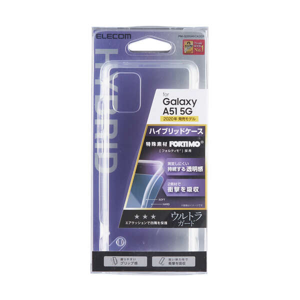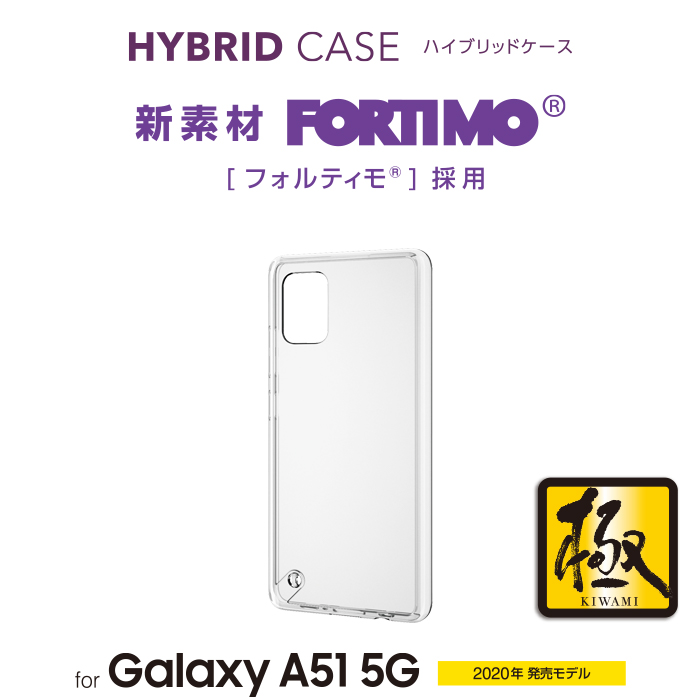 側面に高弾性・無黄変性に優れた三井化学(株)製「フォルティモ®/TPU(熱可塑性ポリウレタン)」素材を、背面に強じんで透明度の高いポリカーボネート素材を使用した、スリムなスタイルのGalaxy A51 5G用ハイブリッドケースです。