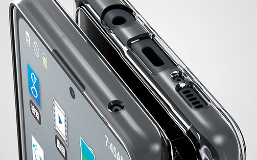 ケース背面と前面にそれぞれ凸型リブ設計を施し、背面カメラや背面、液晶画面のキズ付きを防ぎます。
