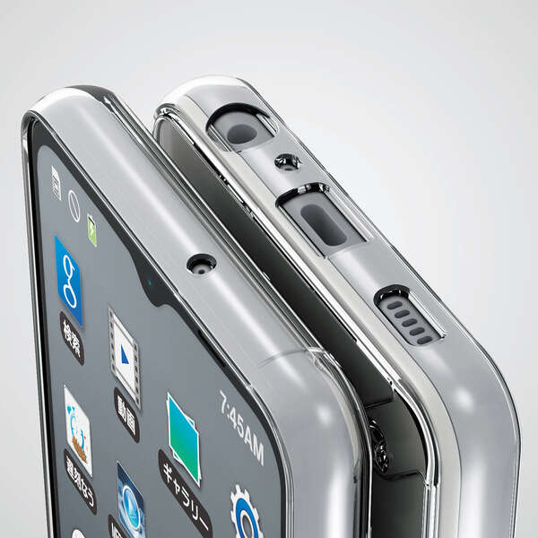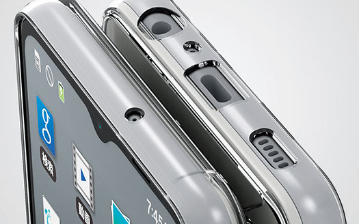 カバー背面と前面にそれぞれ凸型リブ設計を施し、背面カメラや背面、液晶画面のキズ付きを防ぎます。
