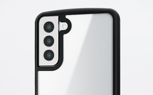 全周に配置した独自設計のエアクッションが衝撃を吸収し、背面には高硬度8Hの特殊樹脂を採用した、Galaxy S21+ 5G用TOUGH SLIM LITEケースです。