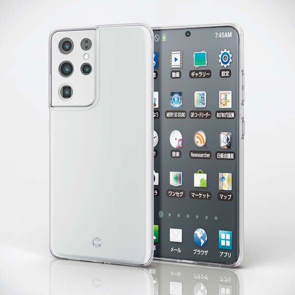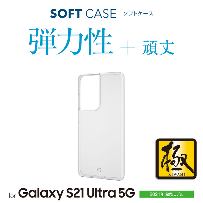 強じんな耐久性としなやかな弾力性を合わせ持ったTPU(熱可塑性ポリウレタン)素材を使用した、本体デザインが美しく際立つGalaxy S21 Ultra 5G用ソフトケースです。