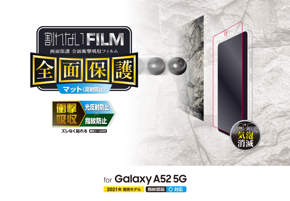 特殊構造のフィルムが衝撃を緩和し、液晶画面をキズや汚れから守る衝撃吸収フィルムです。