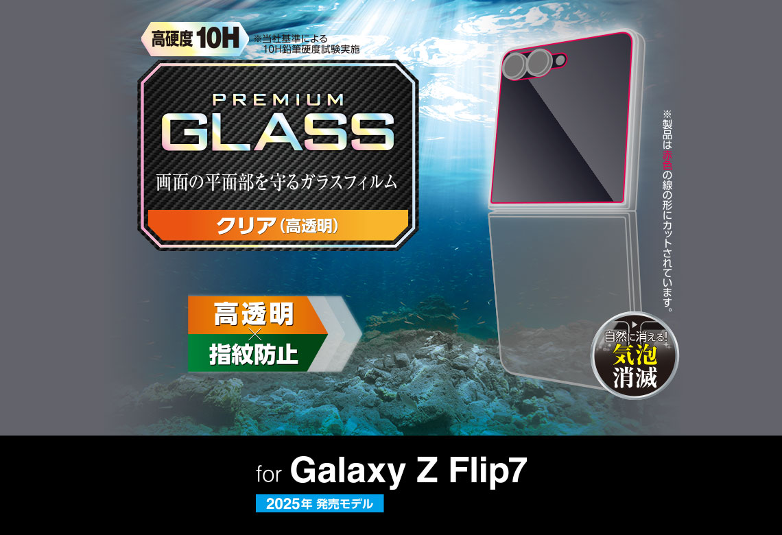 「リアルガラス」を採用した“液晶保護ガラス”です。美しい透明度と、ガラス特有のなめらかな指すべりを実現しました。