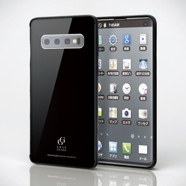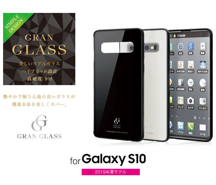 TPU素材とポリカーボネートとガラスの3種構造で、機器本体を美しく保護するGalaxy S10用ハイブリッド/ガラスケースです。