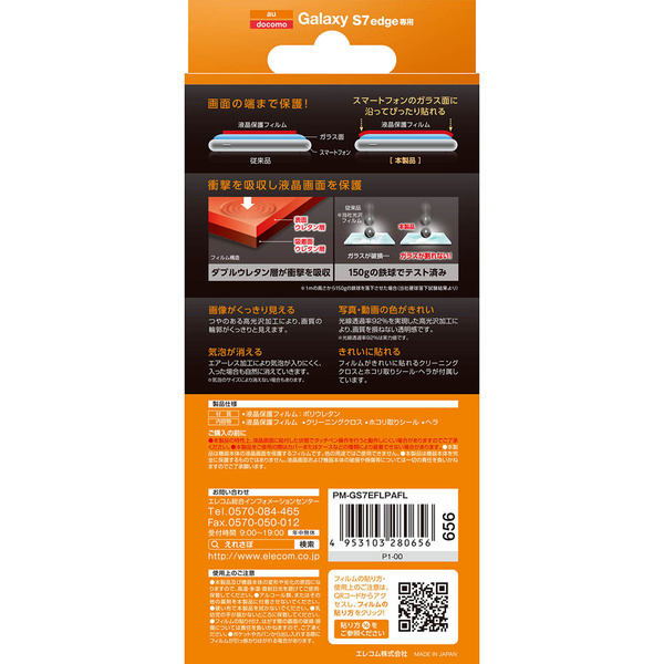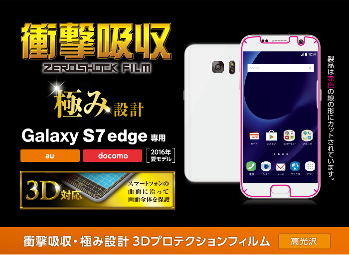 - 柔軟性のあるフィルムが衝撃を吸収するGalaxy S7 edge用衝撃吸収フィルムです。