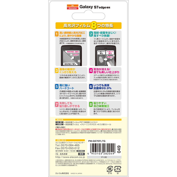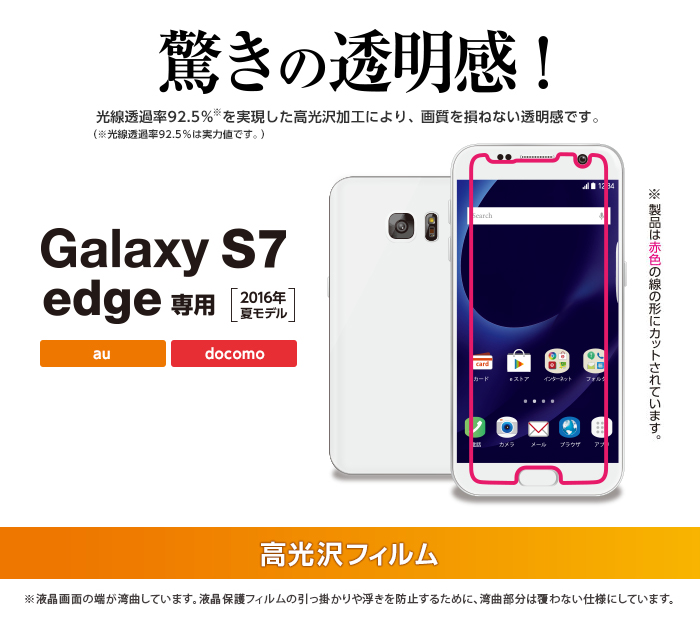 - Galaxy S7 edgeの液晶画面をキズや汚れから守る、高光沢タイプの液晶保護フィルムです。