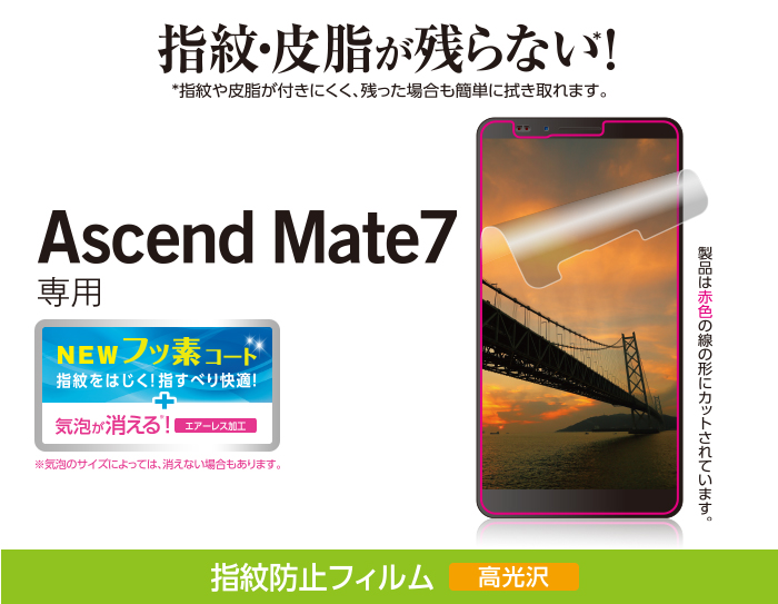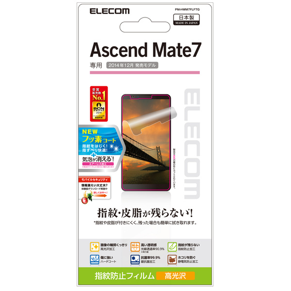 - HUAWEI Ascend Mate7の液晶画面をキズや汚れから守る、指紋防止タイプの液晶保護フィルムです。
