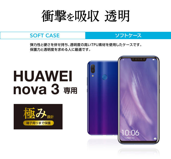 強じんな耐久性としなやかな弾力性を合わせ持ったTPU(熱可塑性ポリウレタン)素材を使用した、本体デザインが美しく際立つスーパークリスタルクリアのnova3用ソフトケースです。