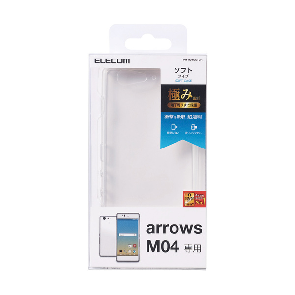 強じんな耐久性としなやかな弾力性を合わせ持ったTPU(熱可塑性ポリウレタン)素材を使用した、本体デザインが美しく際立つarrows M04用極薄ソフトケースです。