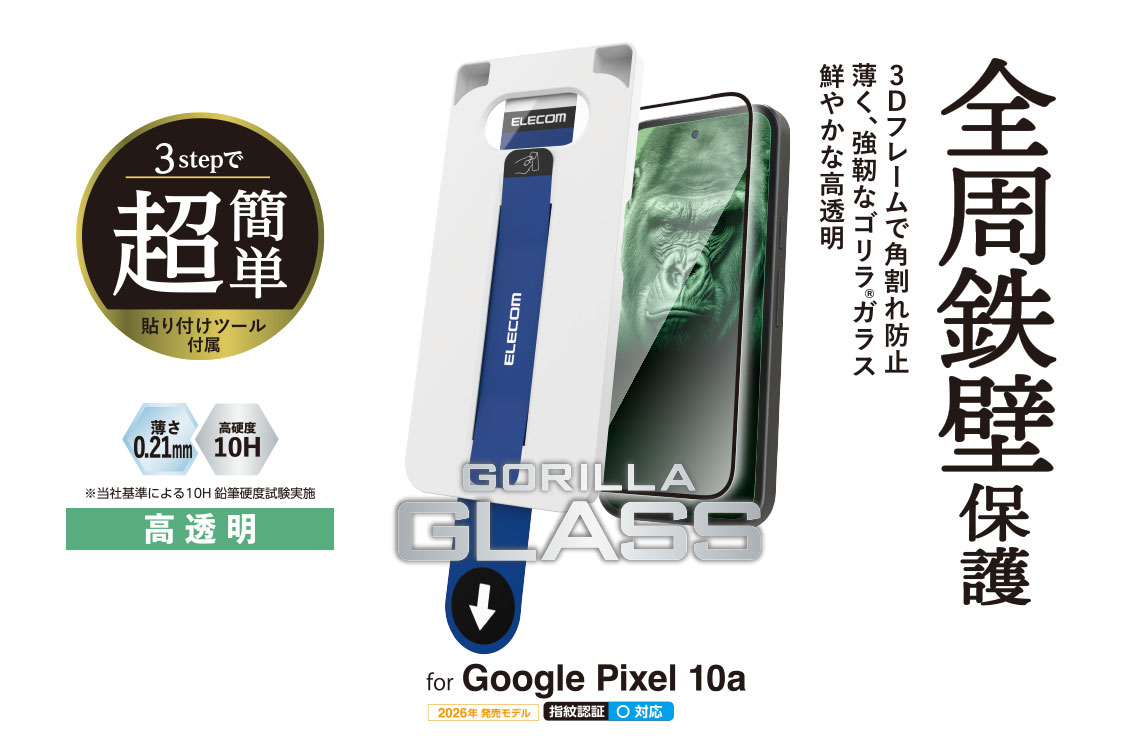 極薄でも強靭な、Gorilla®ガラスを採用した液晶保護ガラス。