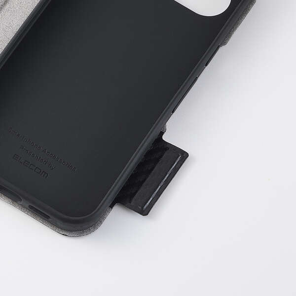不使用時に画面部分をカバーする、横開きタイプのフラップが付いています。