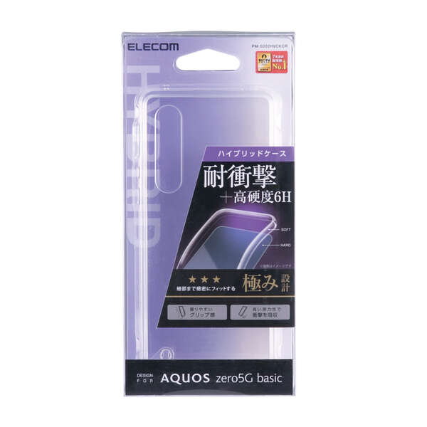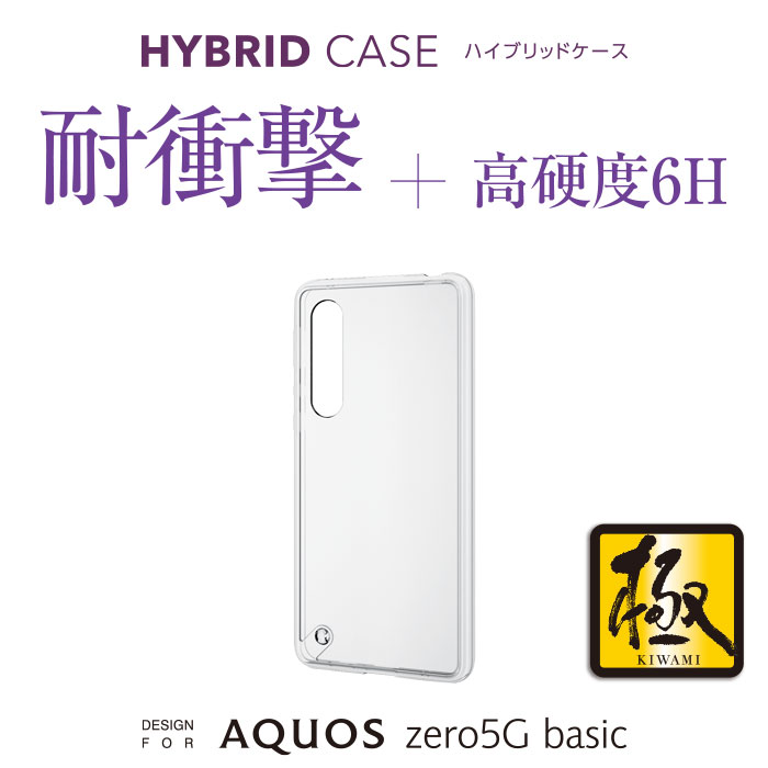 側面に弾力性のあるTPU素材を、背面に強じんで透明度の高いポリカーボネート素材を使用した、スリムなスタイルのAQUOS zero5G basic用ハイブリッドケースです。