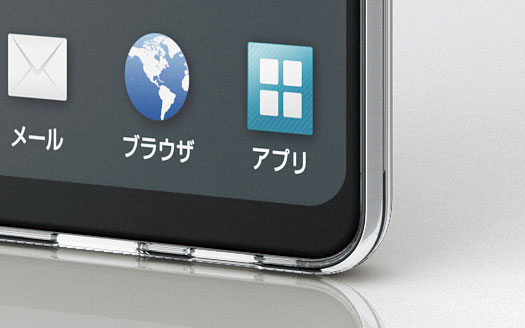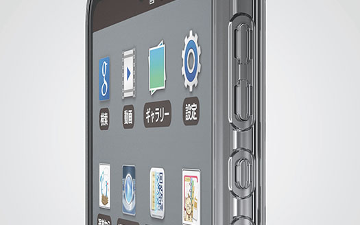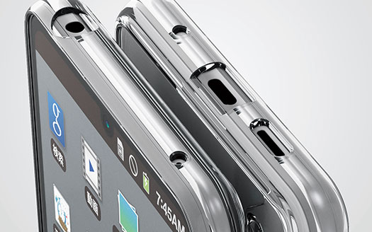 カバー背面と前面にそれぞれ凸型リブ設計を施し、背面カメラや背面、液晶画面のキズ付きを防ぎます。