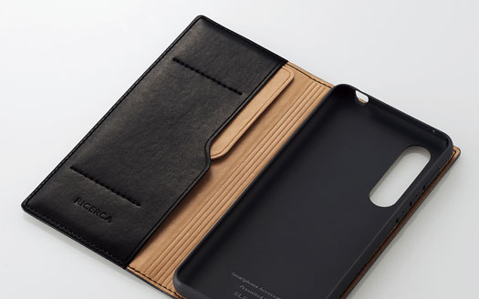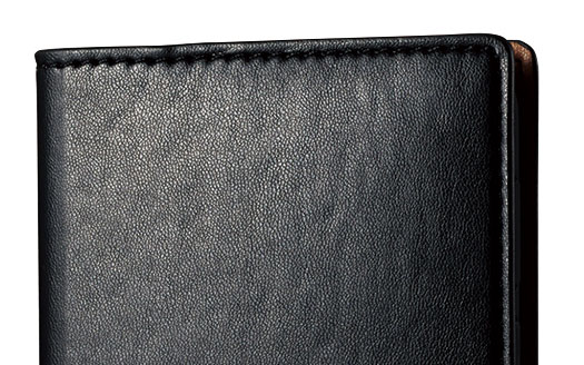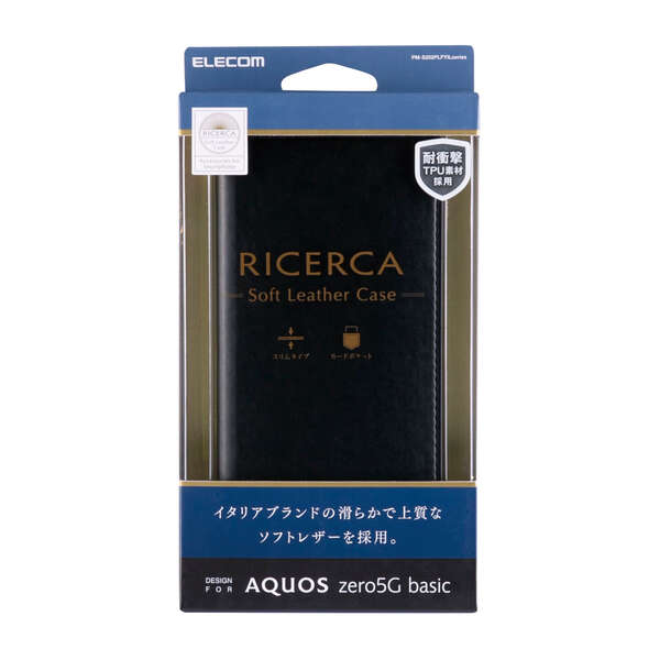 ジャケットに美しく収まるよう、スマートにデザインされたAQUOS zero5G basic用ソフトレザーケース(手帳型)です。