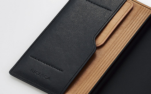 フラップの内側にカードやメモなどの収納に便利な2つのポケットが付いています。