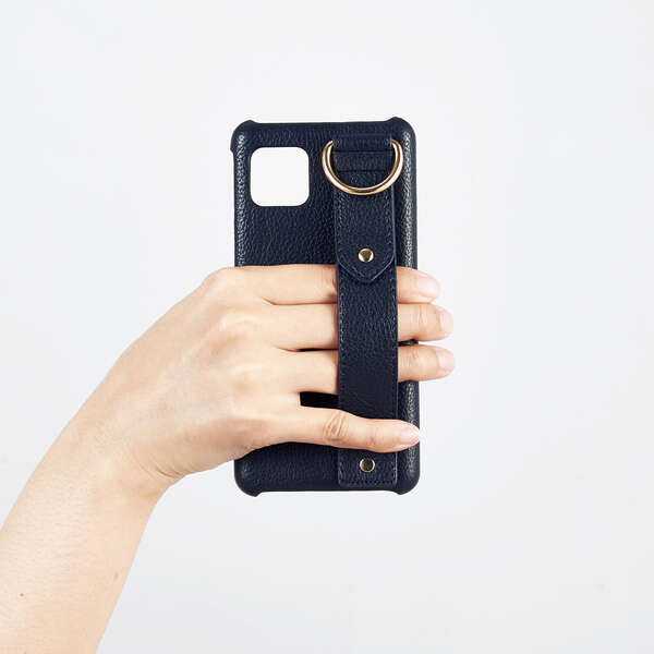 シャンパンゴールド調の金属パーツを使用した落下防止バンドが付いています。