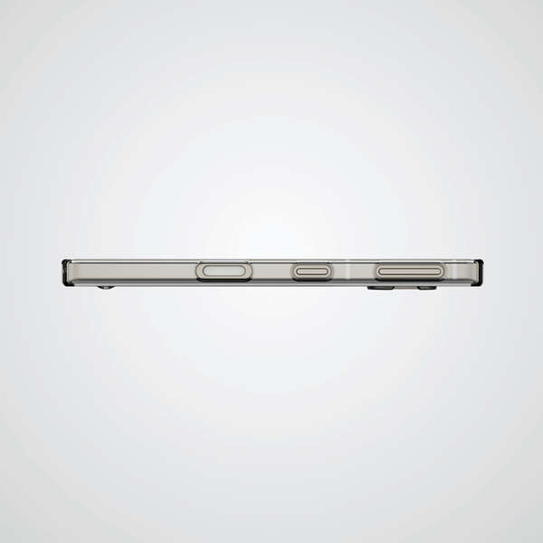 ケース装着時に側面ボタン部が干渉せずスムーズに装着できるデザインで、細い部分に負荷がかからないため破損しにくいです。