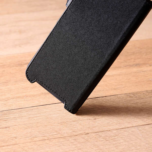 4つのカードポケットを備えた、ハンドストラップ付きのソフトレザーケースです。