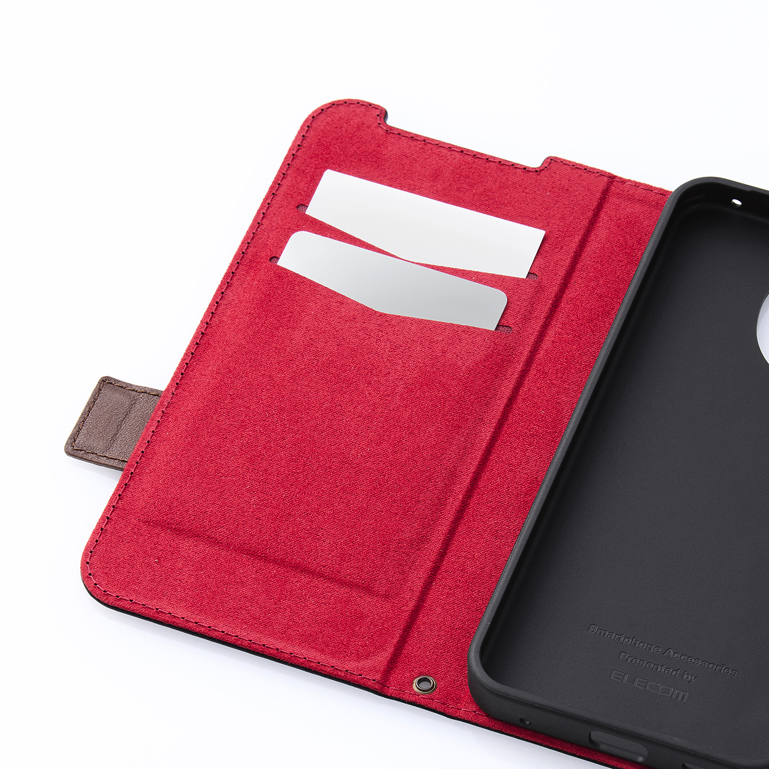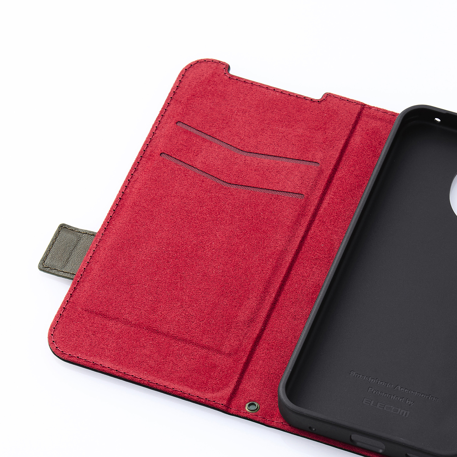 便利な機能を搭載した、革のようなやわらかな風合いの手帳型ケースです。