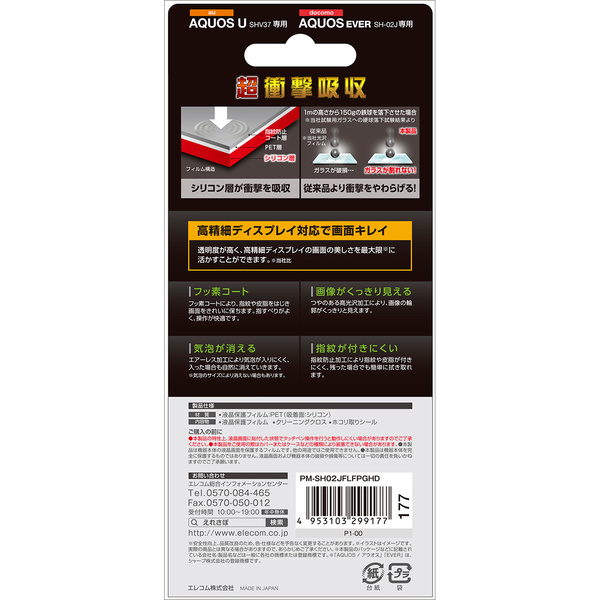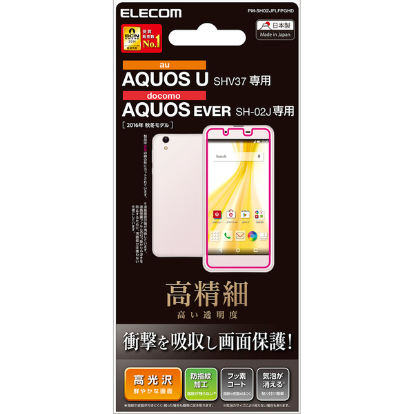 - 特厚シリコン層が衝撃を吸収し液晶画面を保護するdocomo AQUOS EVER(SH-02J) / Disney mobile on docomo(DM-01J) / au AQUOS U(SHV37)用衝撃吸収フィルムです。
