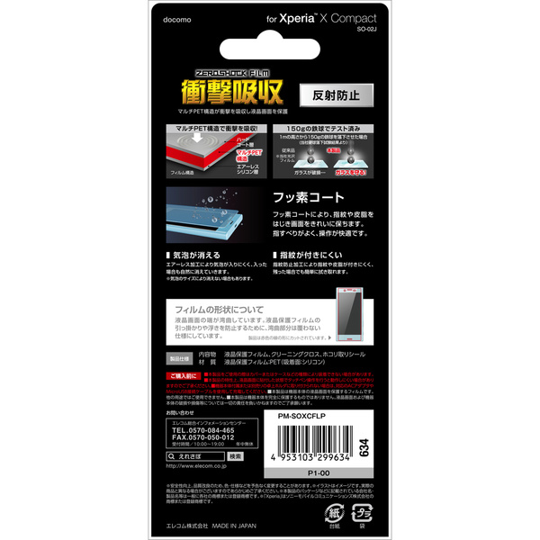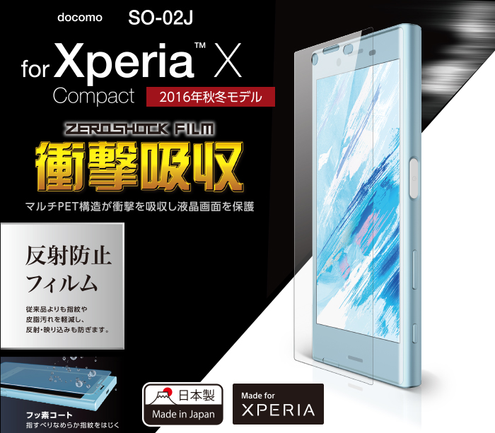 - マルチペット構造が衝撃を吸収し液晶画面を保護するXperia (TM) X Compact (docomo SO-02J)用衝撃吸収フィルムです。