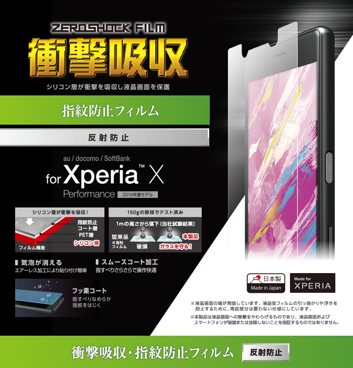 - Xperia (TM) X Performanceの形状に合わせたサイズにカット済みなので、パッケージから取り出してすぐに使用可能です。