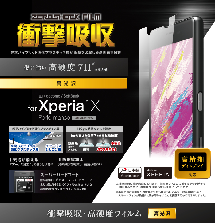 - Xperia (TM) X Performanceの形状に合わせたサイズにカット済みなので、パッケージから取り出してすぐに使用可能です。※液晶画面の端が湾曲しているため、湾曲部分は覆わない仕様にしています。