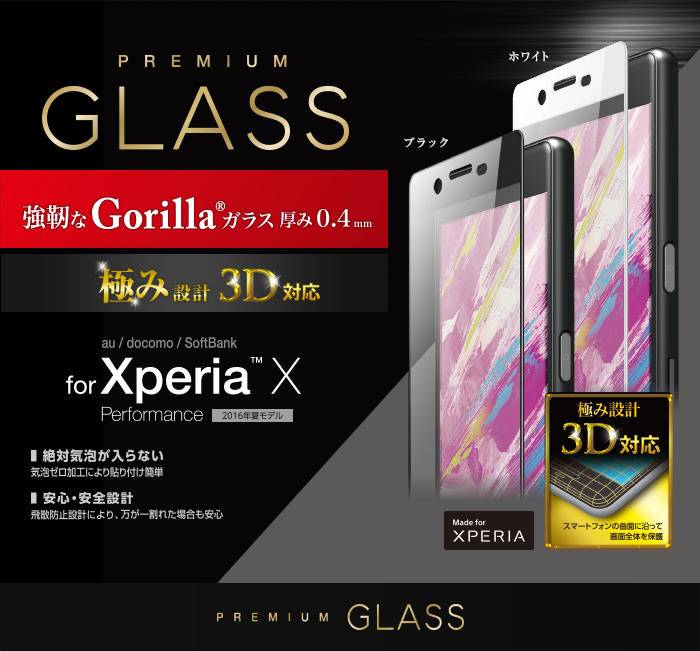 - Xperia (TM) X Performanceの形状に合わせたサイズにカット済みなので、パッケージから取り出してすぐに使用可能です。