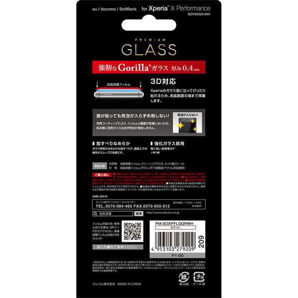 • Xperia (TM) X Performanceの形状に合わせたサイズにカット済みなので、パッケージから取り出してすぐに使用可能です。