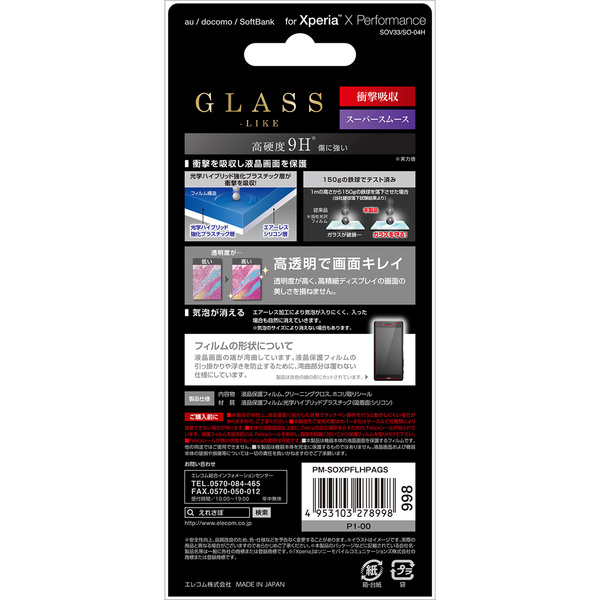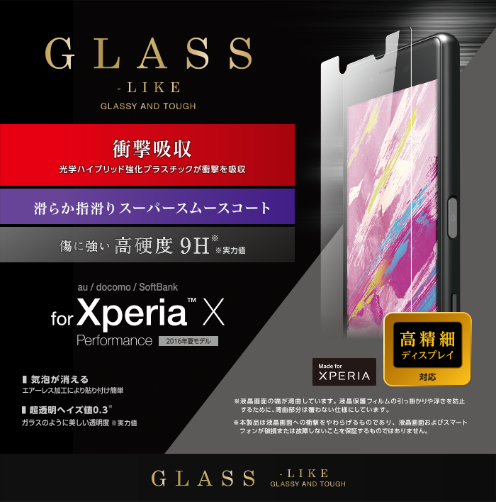 - Xperia (TM) X Performanceの形状に合わせたサイズにカット済みなので、パッケージから取り出してすぐに使用可能です。※液晶画面の端が湾曲しているため、湾曲部分は覆わない仕様にしています。