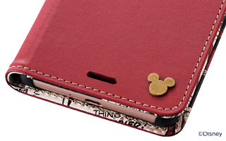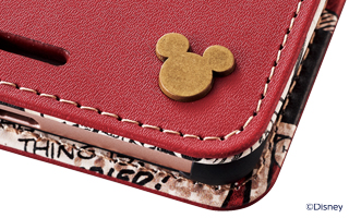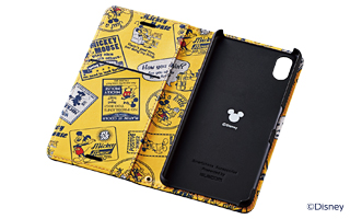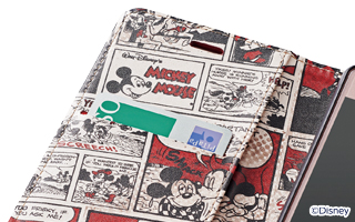 ケース表面にはさりげなくアンティーク調のディズニーキャラクタープレートが、内側にはミッキーマウスやミニーマウスが登場するカジュアルなテキスタイルデザインです。