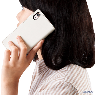 シンプルな中にさりげなくデザインされたディズニーキャラクターが魅力のソフトレザーケース(手帳型)です。カバンの中でもしっかり液晶画面を守るフラップが付いた手帳型タイプです。
