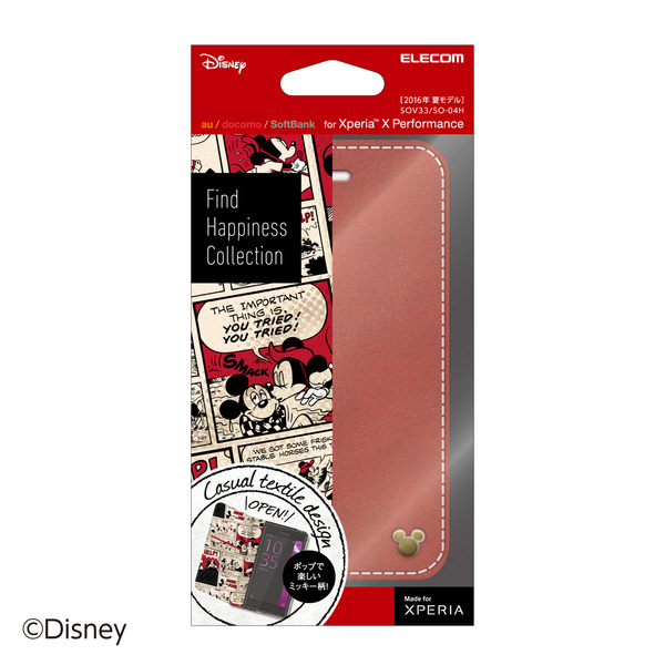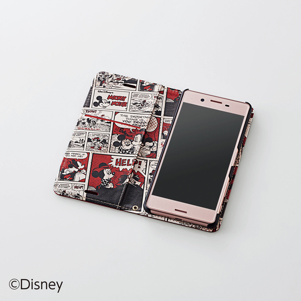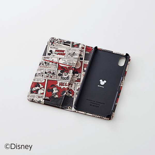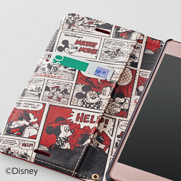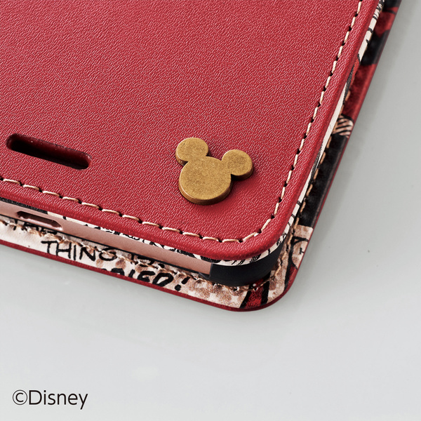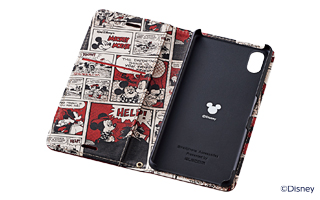 ケース表面にはさりげなくアンティーク調のディズニーキャラクタープレートが、内側にはミッキーマウスやミニーマウスが登場するカジュアルなテキスタイルデザインです。