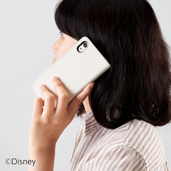 シンプルな中にさりげなくデザインされたディズニーキャラクターが魅力のソフトレザーケース(手帳型)です。カバンの中でもしっかり液晶画面を守るフラップが付いた手帳型タイプです。
