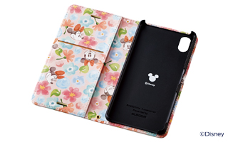ケース表面にはさりげなくアンティーク調のディズニーキャラクタープレートが、内側にはミッキーマウスやミニーマウスが登場するカジュアルなテキスタイルデザインです。