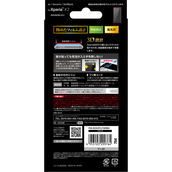 - 端末のラウンド部分にも特殊粘着層を採用し、液晶画面を端まで保護。気泡がぬけてきれいに貼れるXperia (TM) XZ用光沢タイプの液晶保護フィルムです。