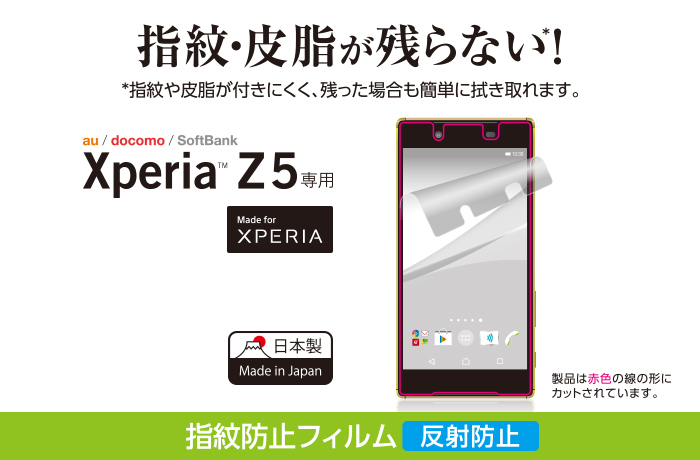 - Xperia (TM) Z5の液晶画面をキズや汚れから守る、指紋防止タイプの液晶保護フィルムです。
