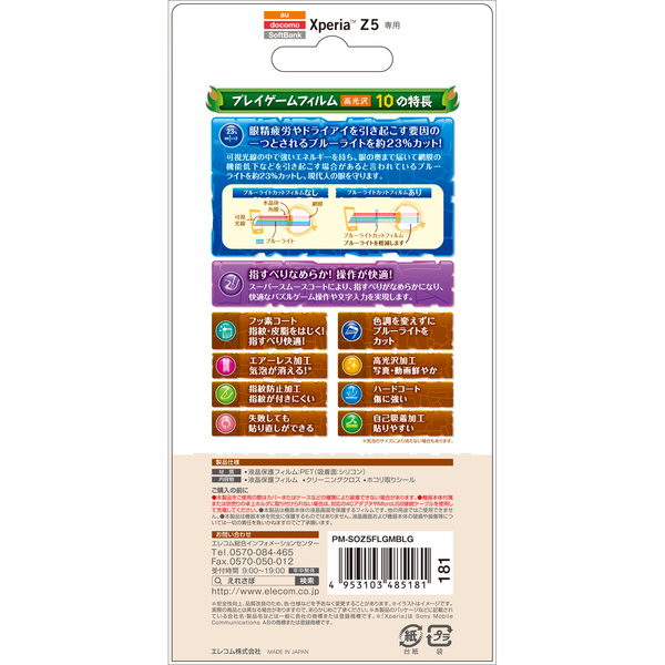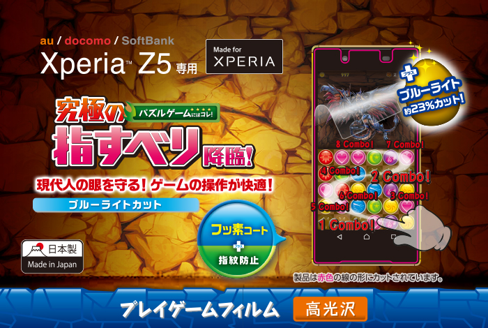 - Xperia (TM) Z5の形状に合わせたサイズにカット済みなので、パッケージから取り出してすぐに使用可能です。