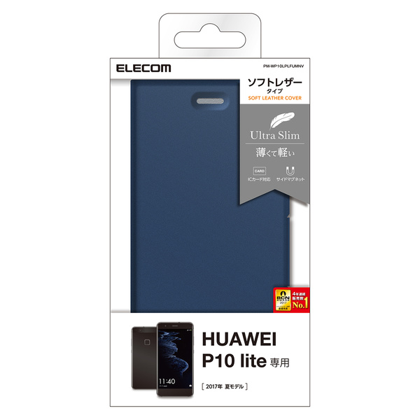 本体の薄さ、軽さを損ねない薄型・超軽量なウルトラスリムタイプのP10 lite用ソフトレザーカバー(手帳型)です。