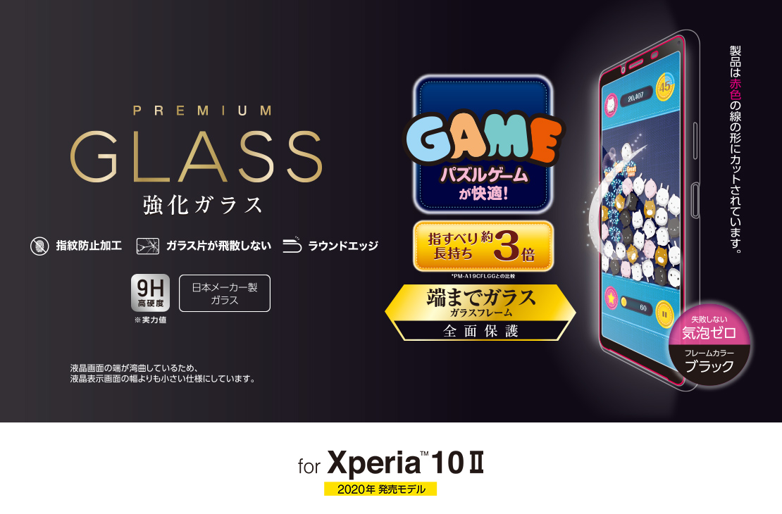 「リアルガラス」を採用した“液晶保護ガラス”です。美しい透明度と、ガラス特有のなめらかな指すべりを実現しました。